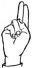 На ћирилици написано РАДНА ЛАПЧЕВИЋ састоји се из 13 слова [?]. Исписано ћириличном једноручном азбуком за глувонеме: